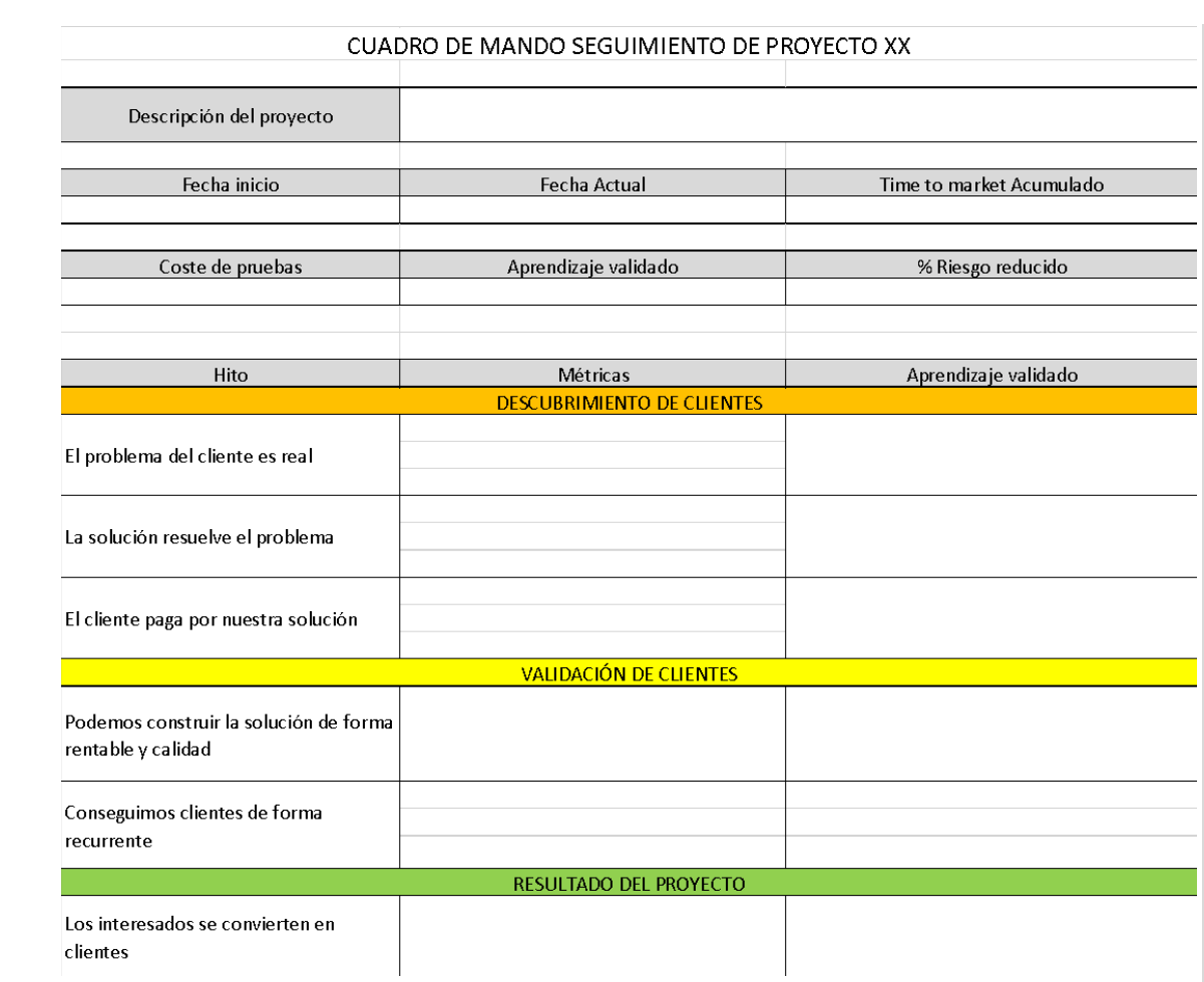 Y así tener una guía más o menos clara de cómo medir el avance de los proyectos de innovación.